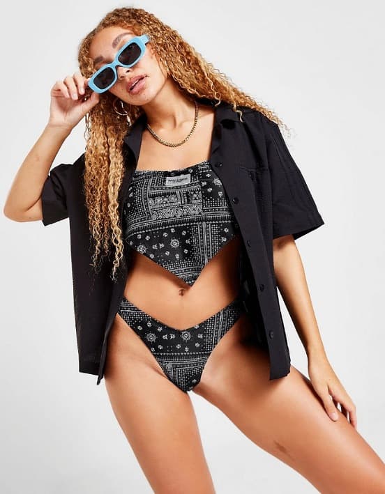 Matchy matchy! Rento setti on huoleton asuvalinta. New Balancen väljästä T-paidasta ja rennoista shortseissa koostuva setti on täydellinen festariasu. Asun viimeistelee sävysävyyn sopiva lippis. Myös bikinit käyvät festariasusta! Tyylikkäässä kasmirkuvioisessa Supply & Demandin mallissa on kolmionmuotinen yläosa ja korkea yläosa. Heitä päälle rento paita ja kesän kuumin festariasu on valmis!