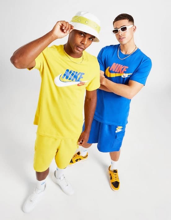 Kokomusta on aina tyylikäs. The North Facen simppeli T-paita ja farkut saavat särmää isosta hatusta. Jos haluat kokomustan asun sijaan olla festarien väripilkku, valitse väri ja pukeudu siihen päästä varpaisiin – Niken T-paidasta ja shortseista koostuva asu on täydellinen festarisetti!