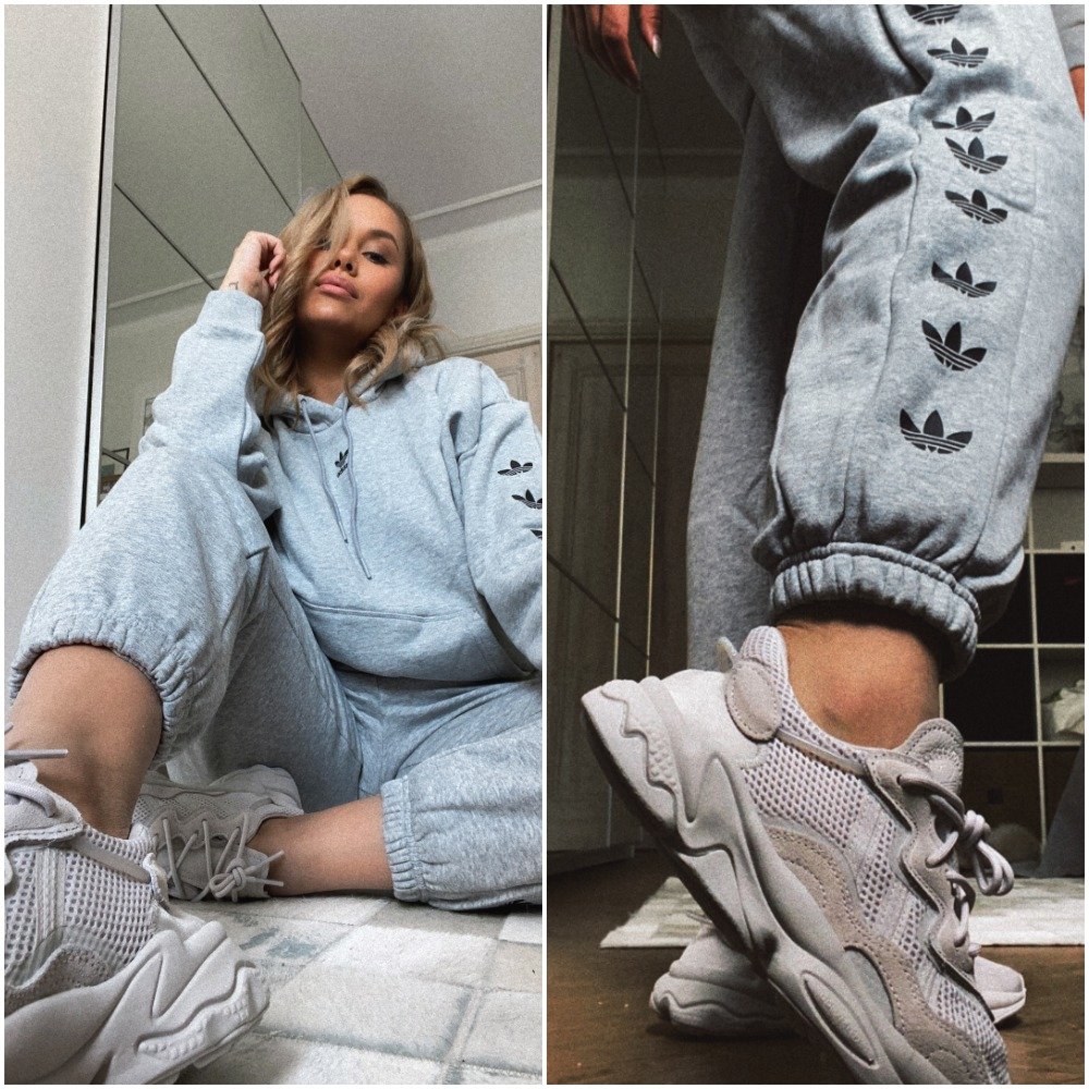 @sarahalexvndra luottaa kolmeen raitaan. adidas Originalsin huppari ja collegehousut yhdistyvät huolettomasti beigeen Ozweego-pariin. Perfection, we say! 👌