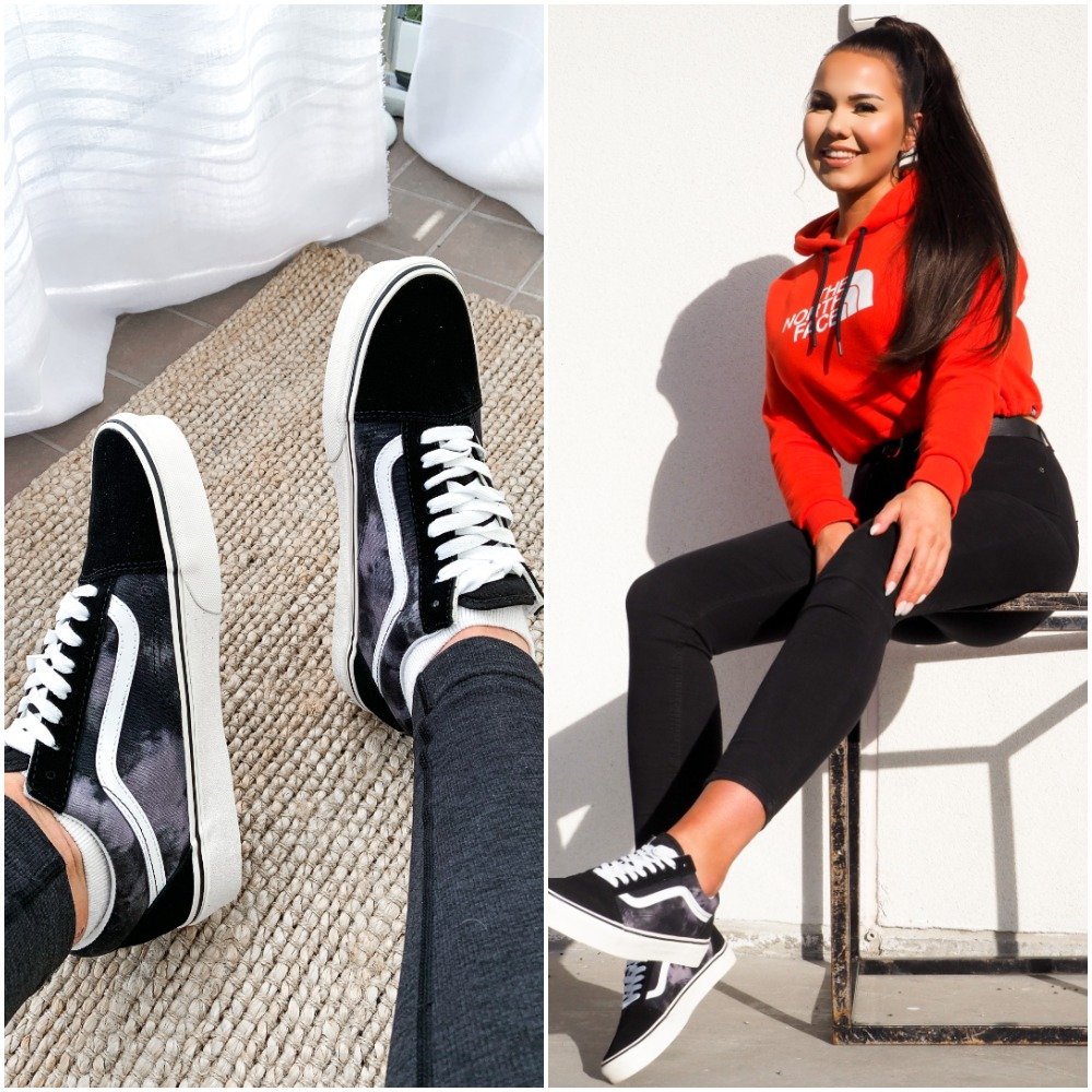@adanette valitsi Vans Old Skool -tennarit batiikkivärjätyssä kuosissa. Yhdistä leggingseihin ja huppariin, ja rento asu huolettomaan päivään on valmis.