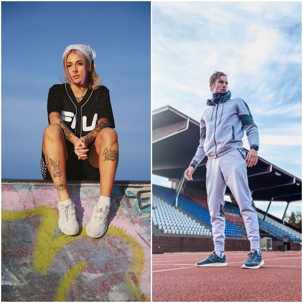 @aurajoutsenlampi tietää, että adidas Originals Ozweego, löysä T-paita ja pyöräilyshortsit ovat kesän lyömättömin yhdistelmä. @aleksileppinen on valinnut päälleen Under Armourin sporttisen verryttelyasusetin.