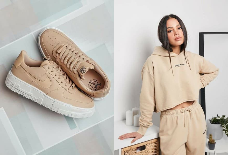 Hempeät pastellivärit saavat kevään väripaletissa parikseen maanläheiset hiekansävyt, kuten beigen, puuterin ja vaaleanruskean. Luo down-to-earth-asukokonaisuus yhdistelemällä tummia ja vaaleita hiekansävyjä toisiinsa ja muihin lämpimän haaleisiin sävyihin, kuten kermanvalkoiseen ja vaaleankeltaiseen. Tuo asuun kontrastia mustista yksityiskohdista.